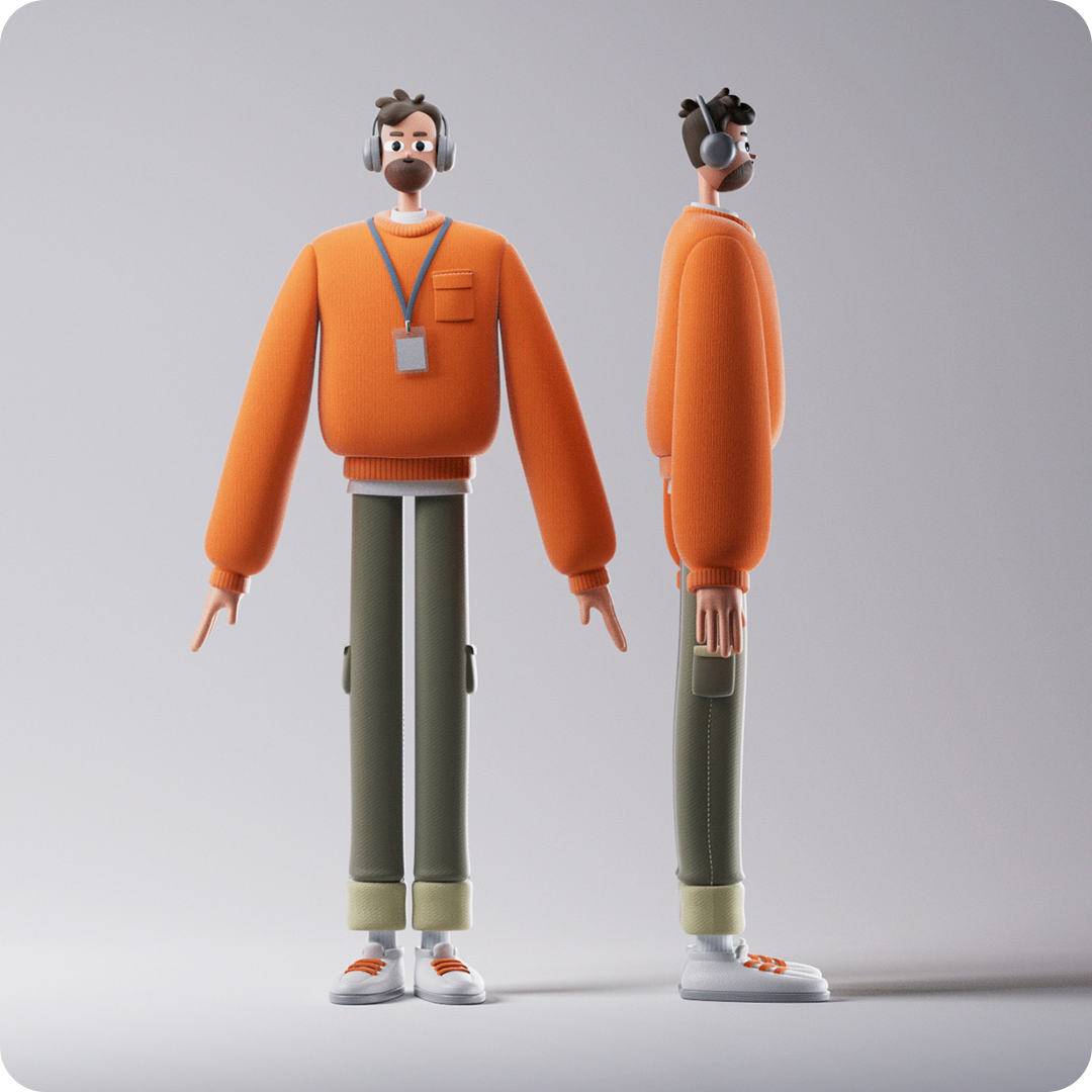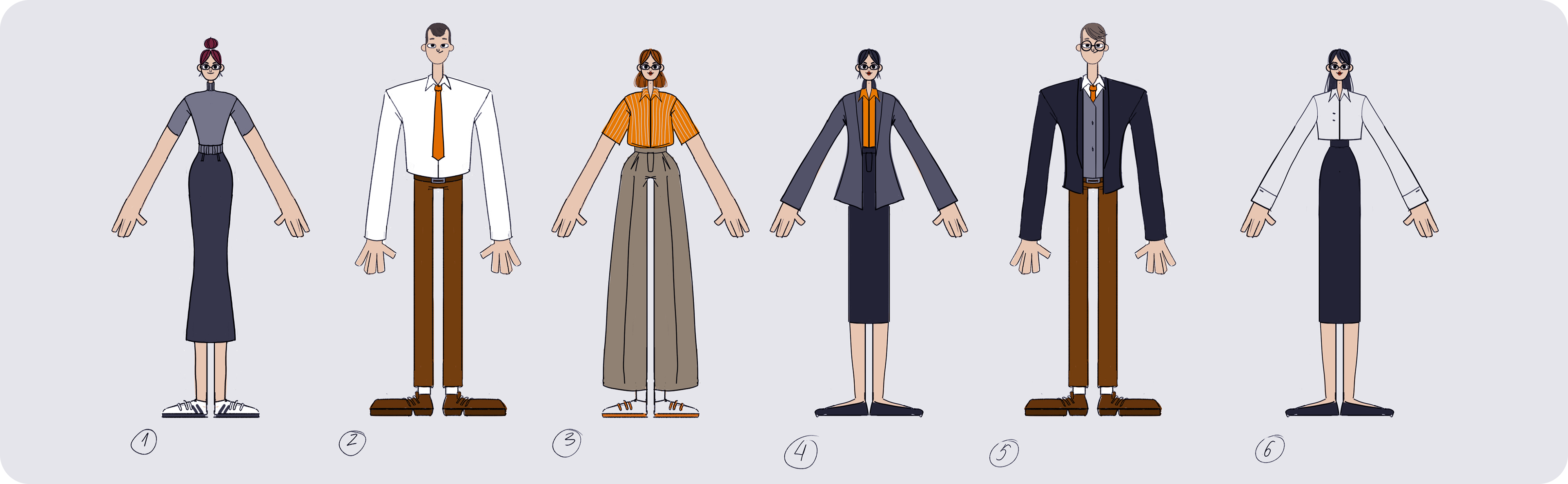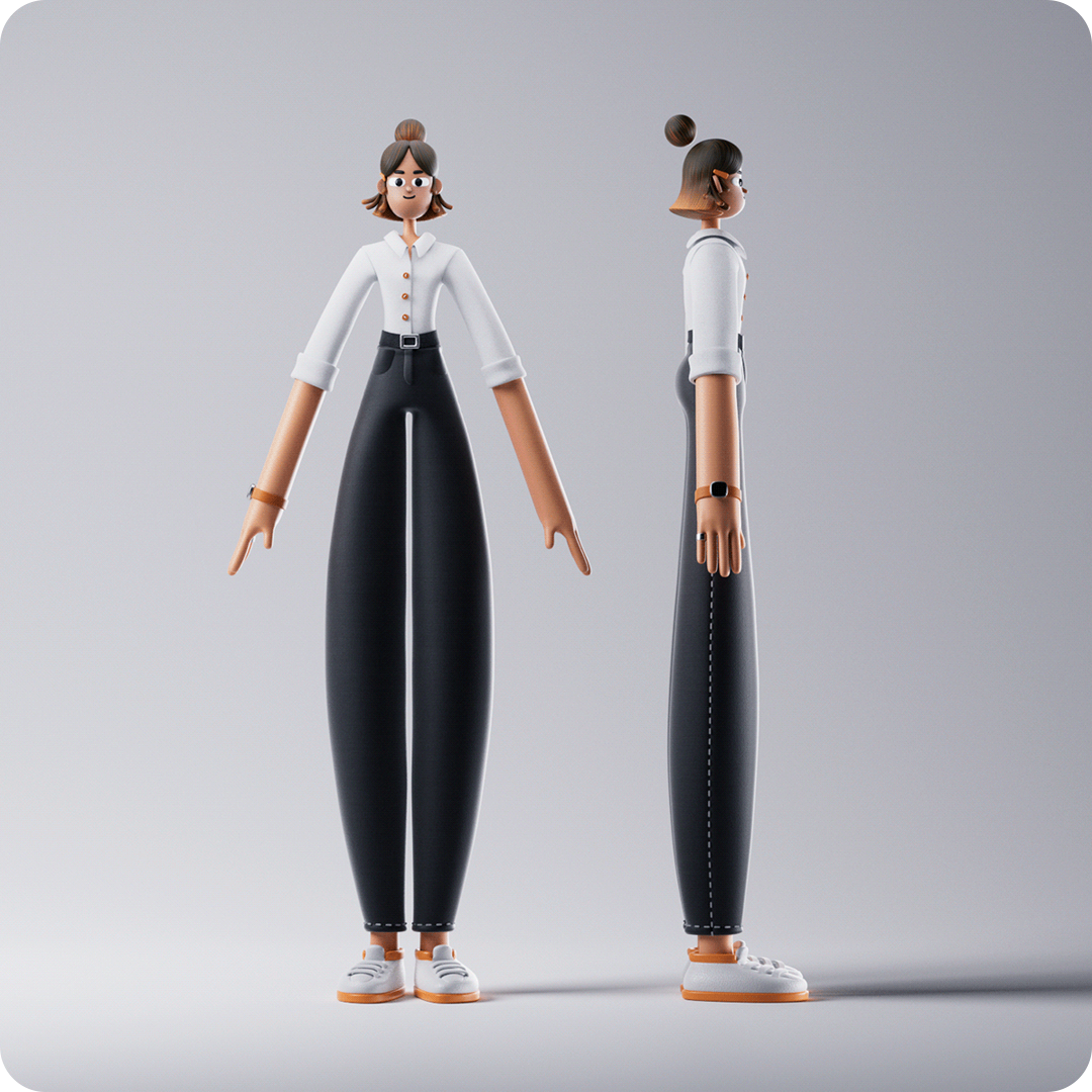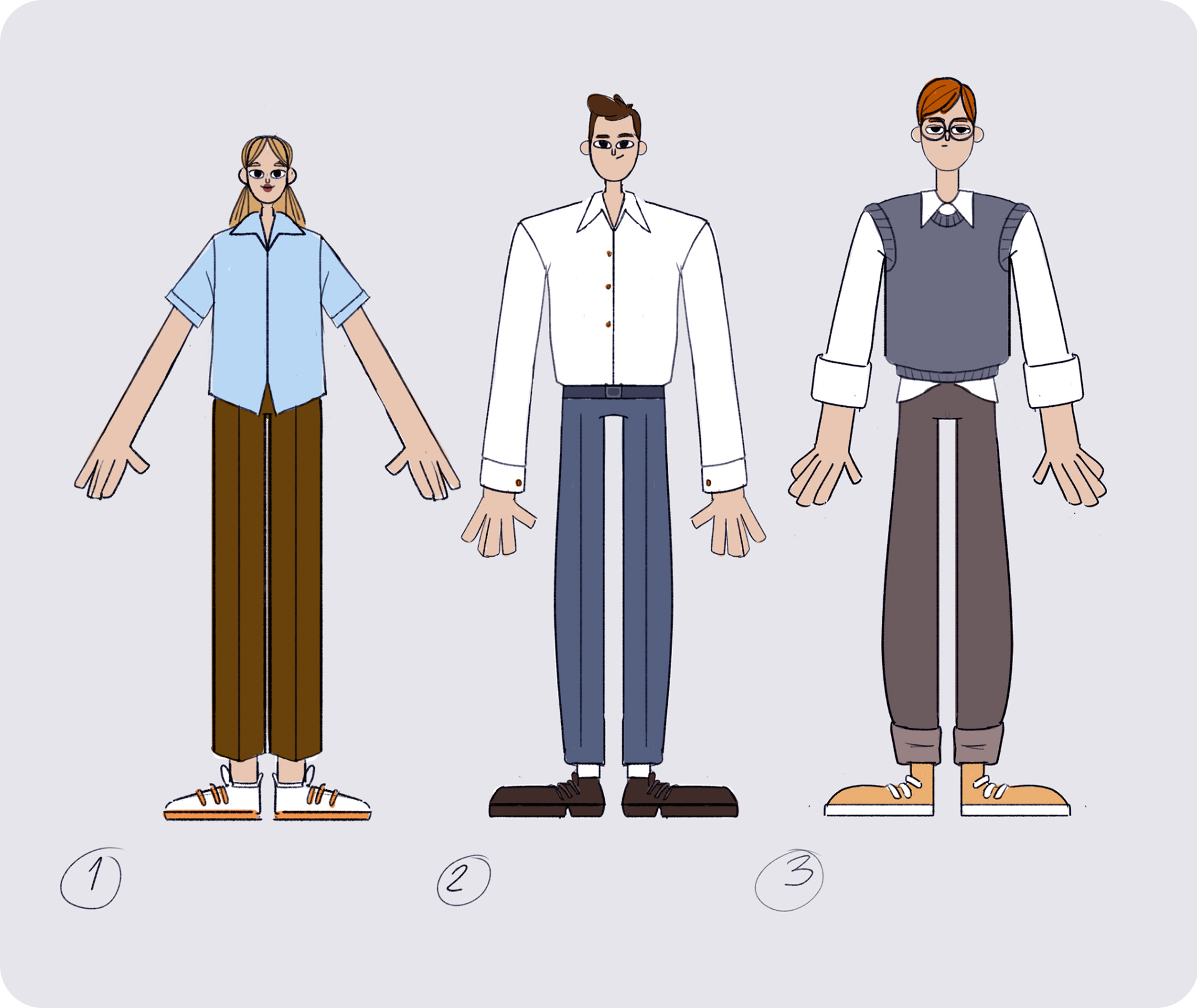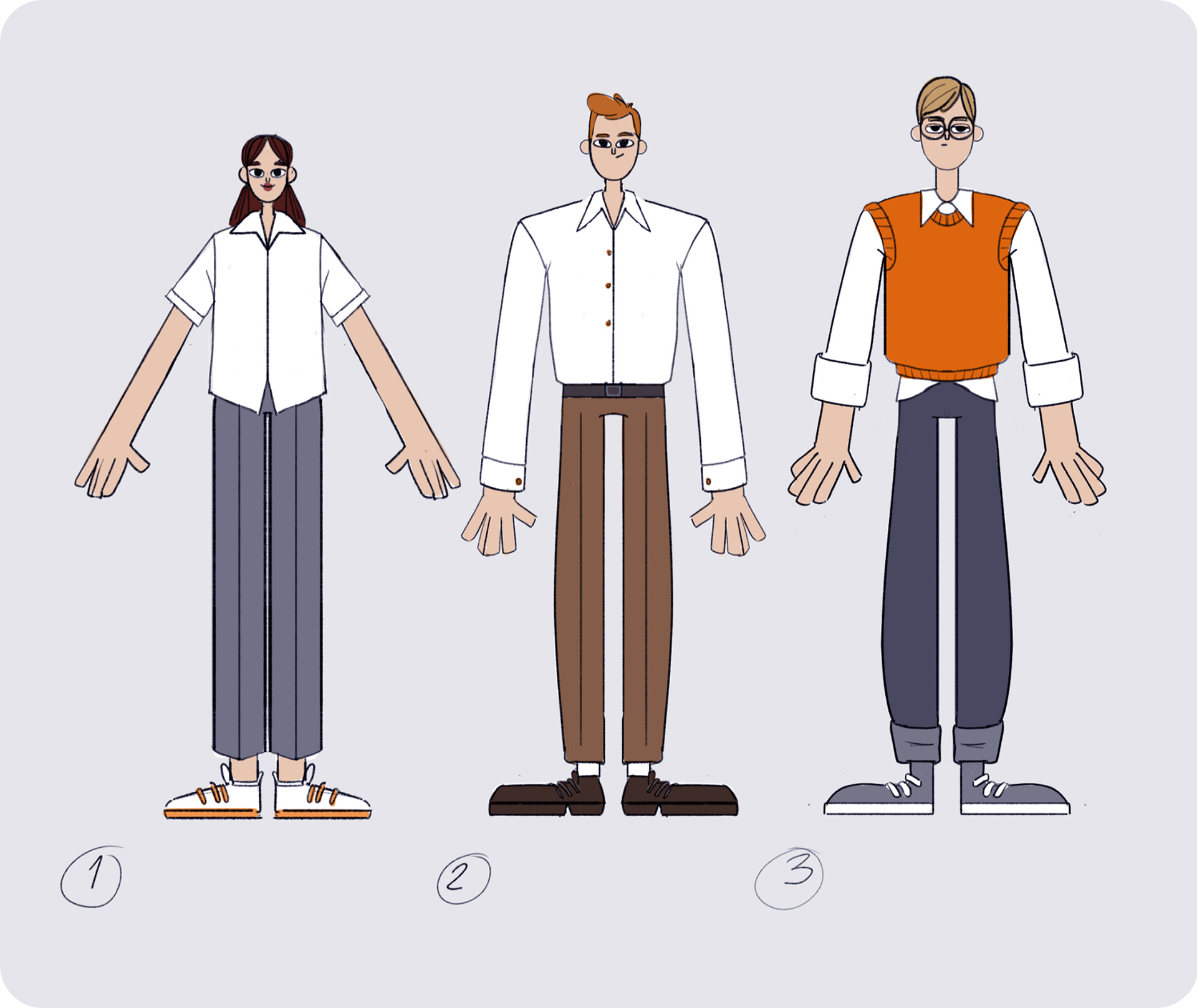 The characters were first developed in 2D to explore proportions, silhouettes, and style. Multiple variations were sketched and refined to find the right balance between simplicity, readability, and personality. Each design focused on clear posture and visual distinction, laying a solid foundation for the final 3D models.