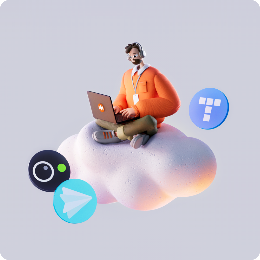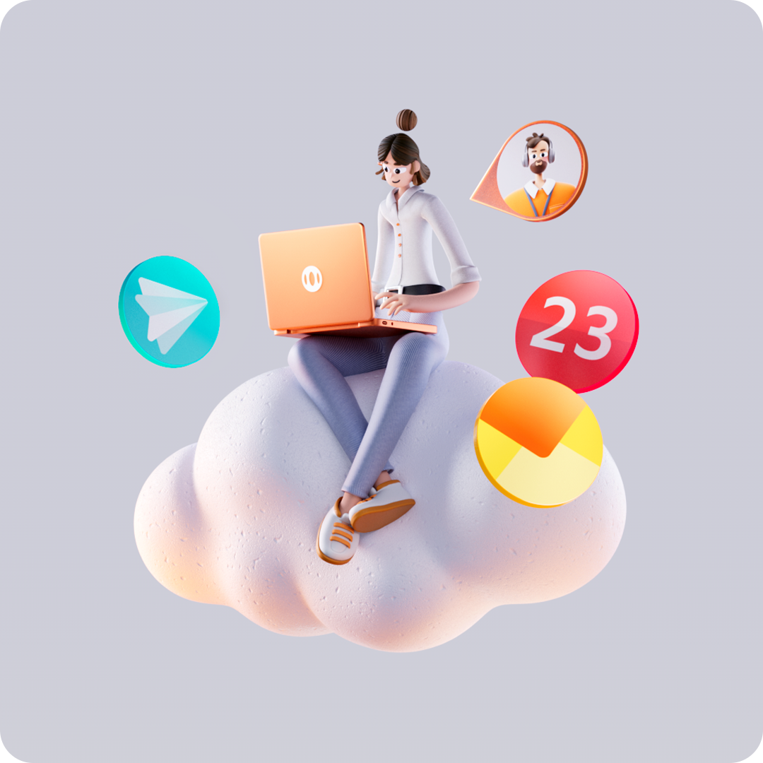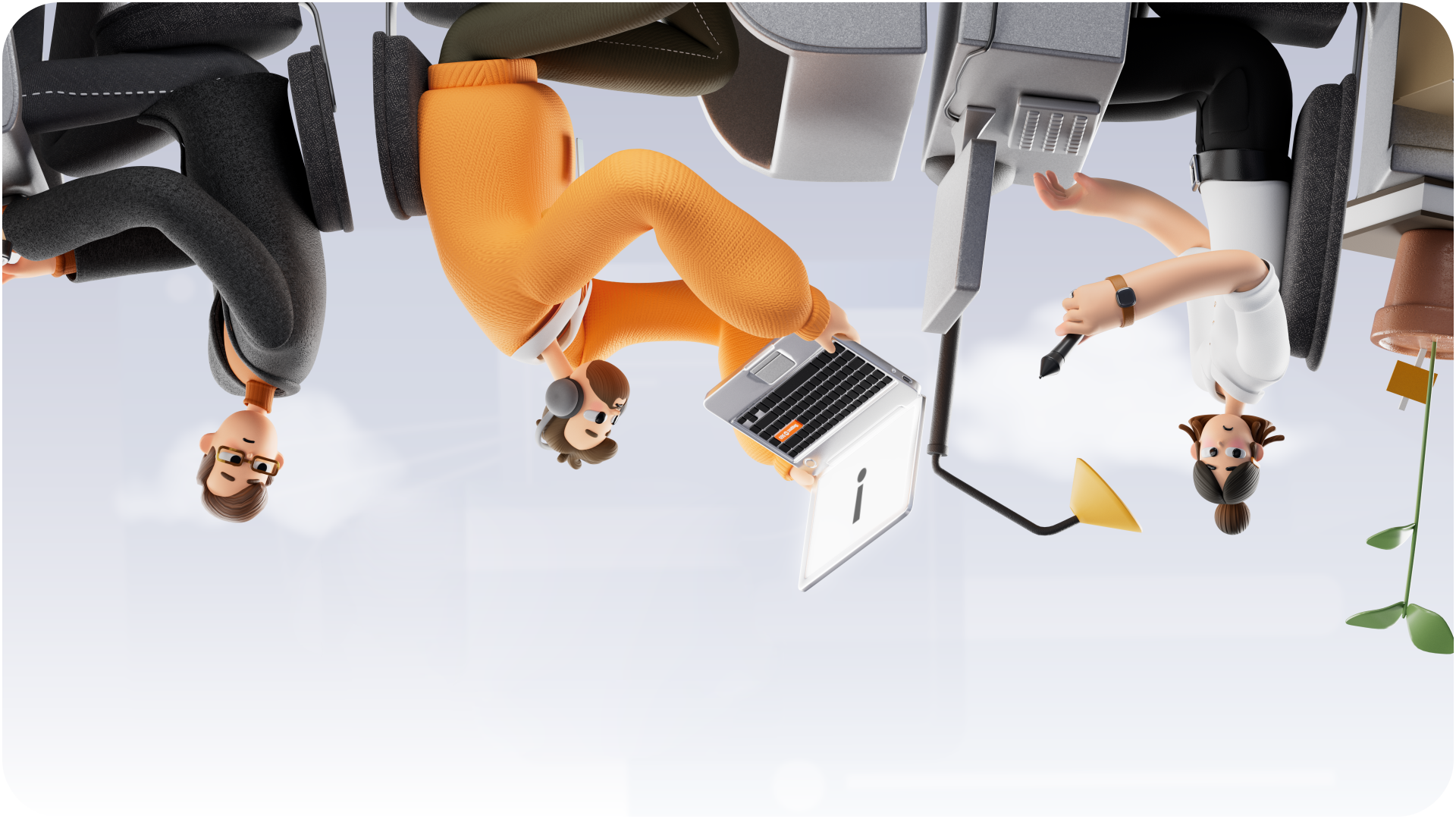 Characters working from the cloud, surrounded by Yandex 360 tools — symbolizing flexibility and digital efficiency. Together with earlier visuals, these key images form a cohesive and engaging visual identity.